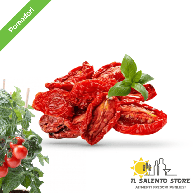 Pomodori secchi salentini: essiccati al sole, saporiti, tradizionali, ideali per piatti autentici mediterranei.